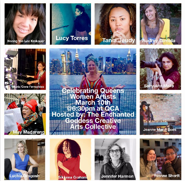 Debut of “Celebrating Queens Women Artists” curated and hosted by Joan Becht Willette. This is part of her new “The Enchanted Goddess Revue” performance series. March 2016