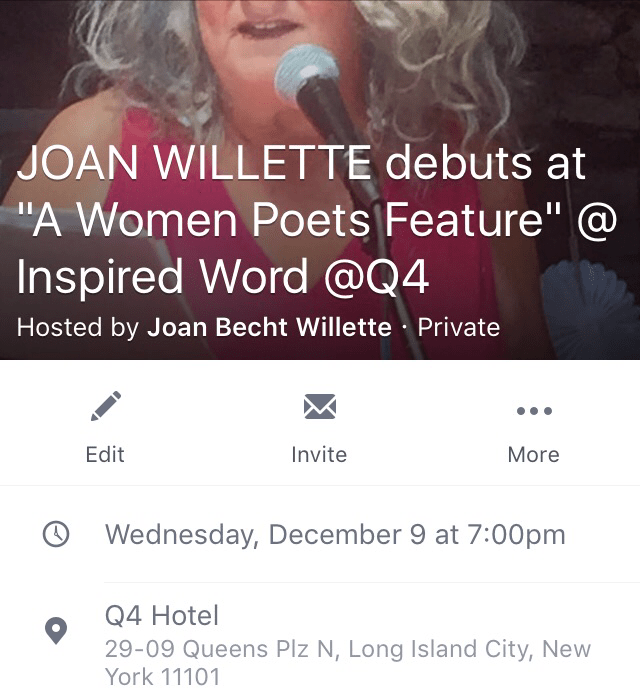 “Women Poets Feature” at Q4 Hotel – December 2015